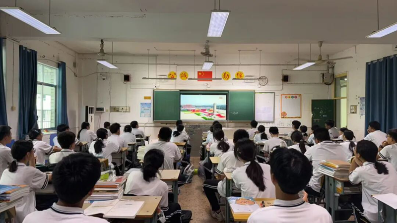 2025年9月3日上午9時,全體師生神情肅穆,齊聚屏幕前,共同觀看"紀念中國人民抗日戰(zhàn)爭暨世界反法西斯戰(zhàn)爭勝利80周年"慶?;顒又辈?。這一刻,歷史與現(xiàn)實交匯,悲壯與奮進共鳴。